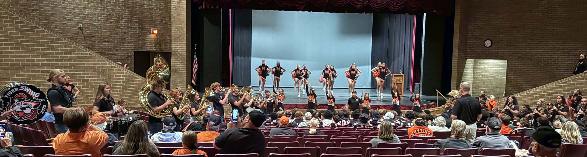 “We’re so lucky to have such great support from the cheerleaders and band (and majorettes),” said Moore. “Thank you, fans and supporters. The support we have here is second to none.” He said that the preparations that the Tigers perform during the week mimic that of the band. That is, practice well to play well. “It was a good Monday practice,” he said. “We’re off to a really good start. Now we need a great practice on Tuesday. We’ll enjoy all the events this week. But, our job is to win the game on Saturday. We’re going to enjoy Saturday at 4:30 or 5:00.”