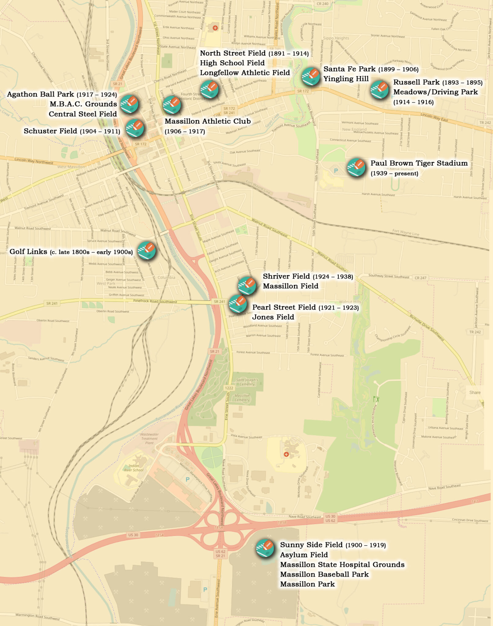 Part 6 of the series presents a look back at all of the football stadiums that the Massillon Tigers have called home over their 130+ year history. Six different venues were used, some more than once, before settling on Paul Brown Tiger Stadium.